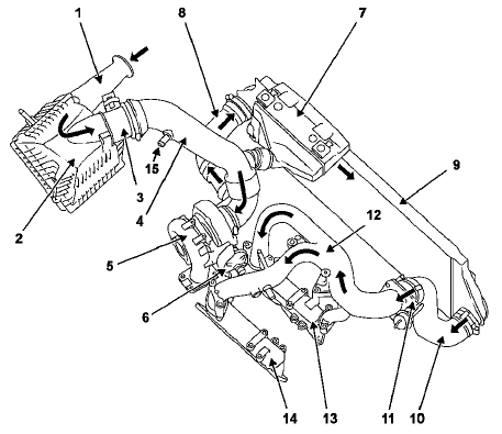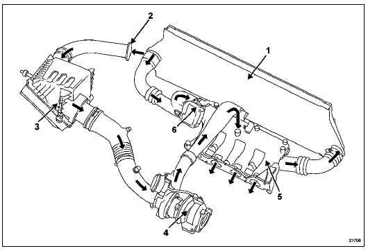 L'admission d'air est équipée d'un ensemble de résonateurs (2) destiné à réduire les bruits d'aspiration et optimiser le remplissage à bas régime.