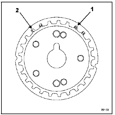 Serrer les poulies d'arbres à cames au couple de 12 daN.m, en utilisant le Mot. 1659 pour immobiliser les poulies d'arbres à cames.