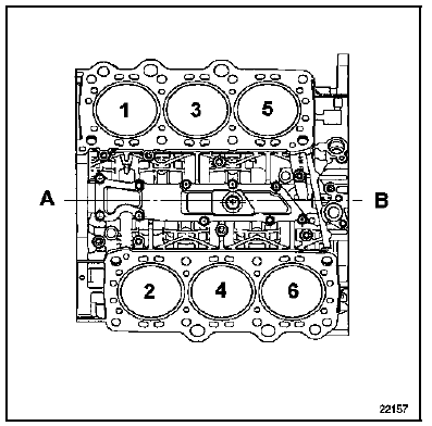 Répéter l'opération pour les cylindres n 3, 4, 5 et 6, en tournant le moteur dans le sens de fonctionnement et en respectant l'ordre d'injection : "1→2→3→4→5→6".