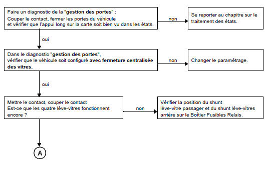 Attention : dans le cas d'un problème sur un lève-vitre antipincement à mémorisation des rétroviseurs côté passager, il faut vérifier la liaison entre l'interrupteur passager de la porte conducteur et le lève-vitre conducteur.