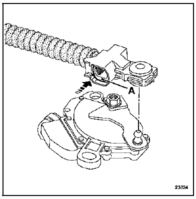 Appuyer sur le tiroir (A) afin de déverrouiller le câble.