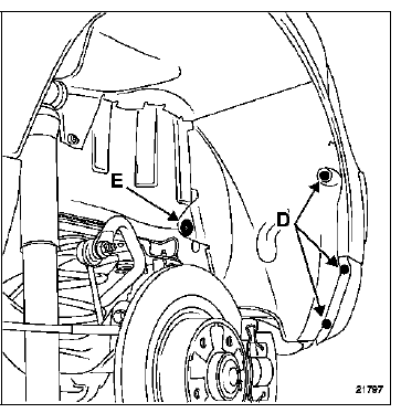 Déposer la vis intérieure latérale (F) puis dégager partiellement le bouclier.