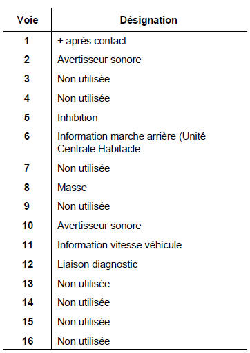 NOTA : l'information vitesse véhicule n'est pas utilisée.