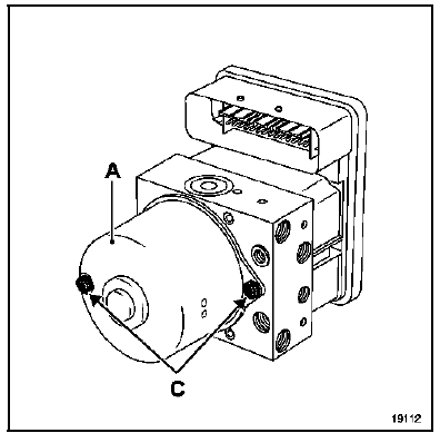 ATTENTION : lors de la dépose, la pompe hydraulique (A) doit être plaquée sur l'unité de modulation de pression.