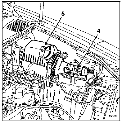 Déposer le conduit d'aspiration d'air (3) muni du débitmètre. Pour cela déposer :