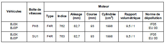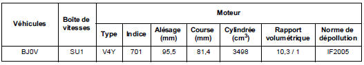 | Ordre d'injection | - | 1 - 2 - 3 - 4 - 5 - 6 n 1 et 2 côté distribution (n 1 sur le banc arrière) |