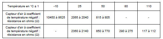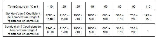 | Capteur d'air | JEAGER | Coefficient de Température Négatif (voir tableau) Résistance : 2500 Ω à 20 C |