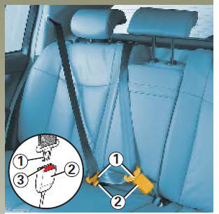 Pressez le bouton 3 du boîtier 2, la ceinture est rappelée par l'enrouleur.