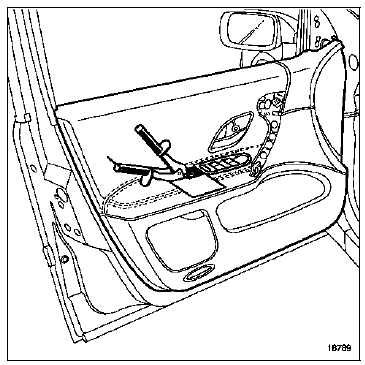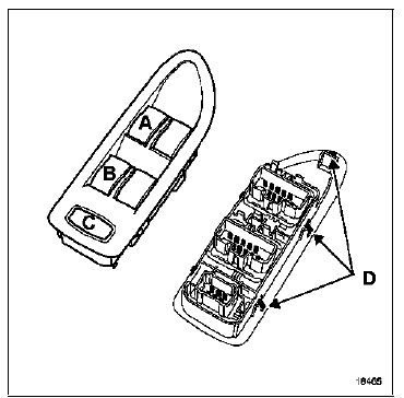 La platine de commande des lève-vitres est clippée par des languettes (D) sur le panneau de porte.