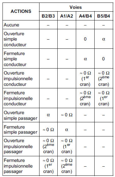 Commande lève-vitre conducteur et passager à deux positions (normale et impulsionnelle).