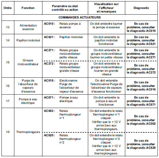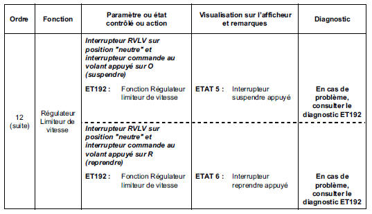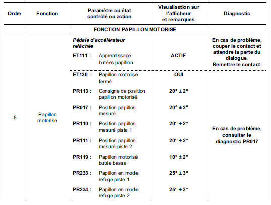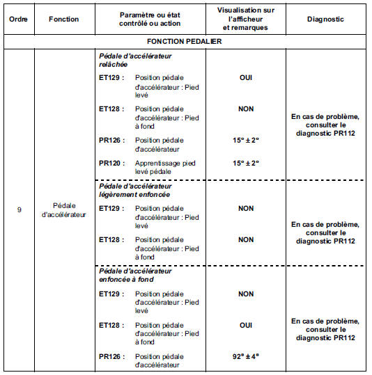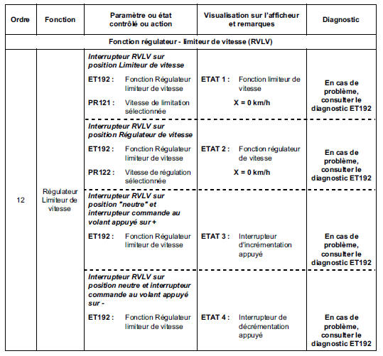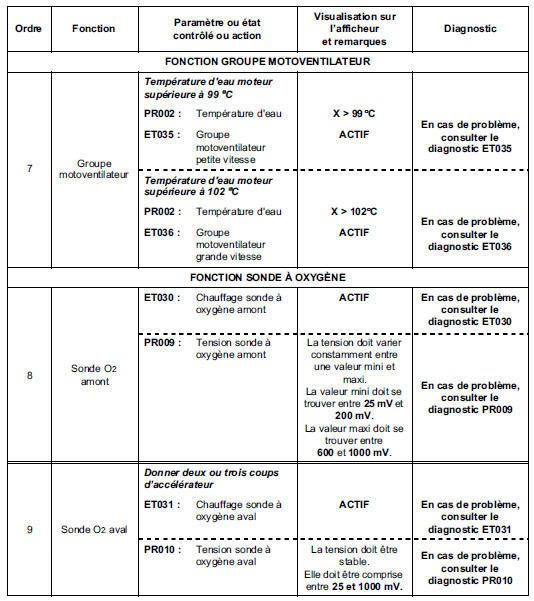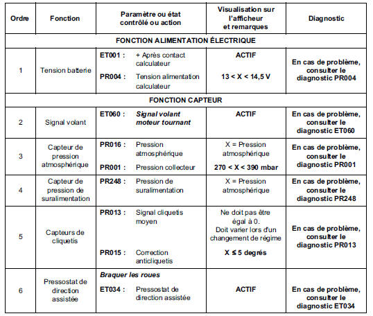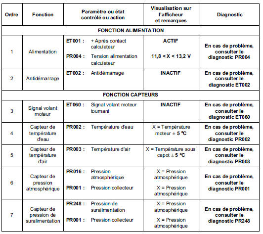 Consulter si nécessaire les caractéristiques exactes de fonctionnement dans le Manuel de Réparation.