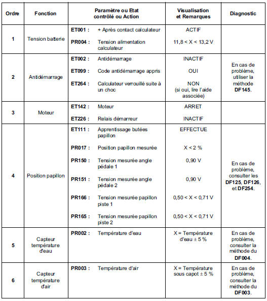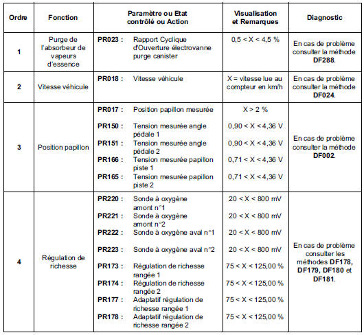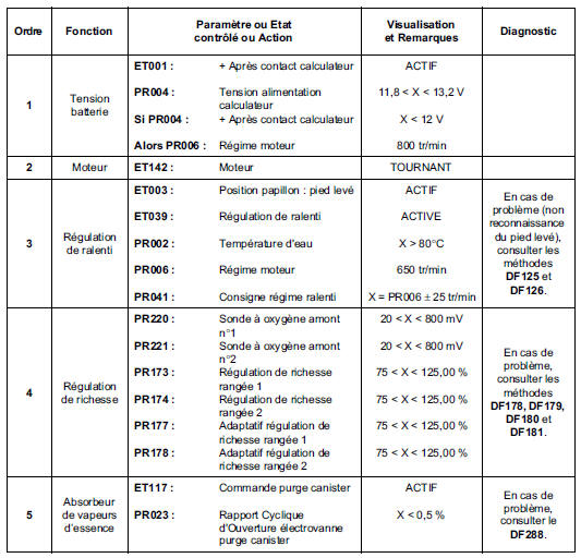 Condition d'exécution : Moteur chaud au ralenti, sans consommateur.