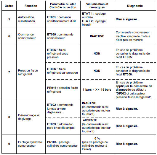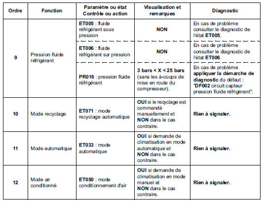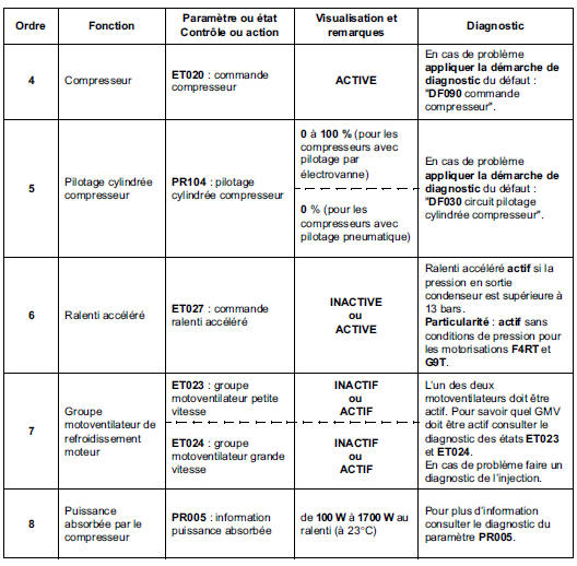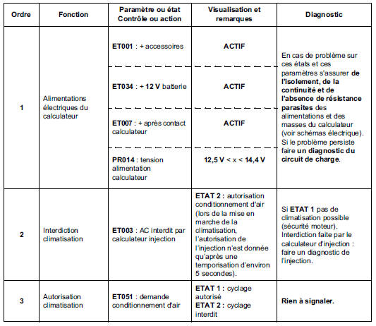Conditions d'application : moteur au régime de ralenti, climatisation en fonctionnement.