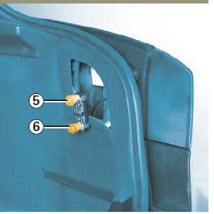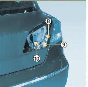 Sur la porte de coffre, déclipsez le cache 6 du bloc de feux concerné pour accéder à la vis de maintien.