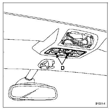 IMPORTANT : avant de commencer la dépose de la garniture de pavillon, il est impératif de verrouiller le calculateur d'airbag à l'aide de l'outil de diagnostic (pour les consignes voir chapitre 88).
