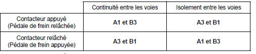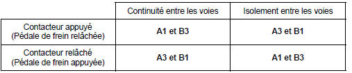 Vérifier l'absence de continuité sur l'interrupteur entre les voies A2 et B1 en position relâchée. Si continuité remplacer l'interrupteur.