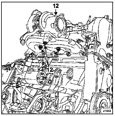 Serrer les quatre écrous du turbocompresseur au couple de 1 daN.m suivi par un serrage angulaire de 90 .