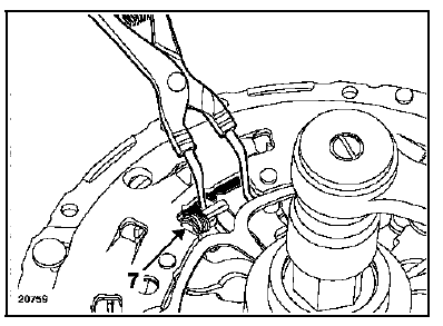 Pour les mécanismes d'embrayage à rattrapage automatique il faut comprimer le mécanisme d'embrayage à l'aide de l'outil Emb. 1604 en suivant la méthode décrite ci-après.