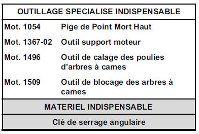 ATTENTION : il est impératif de dégraisser le nez de vilebrequin, l'alésage du pignon de distribution, les faces d'appui de la poulie ainsi que les extrémités des arbres à cames (côté distribution) et les alésages des pignons des arbres à cames, afin d'éviter un glissement de la distribution risquant d'entraîner la destruction du moteur.