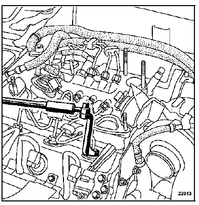Desserrer les raccords des tuyaux haute pression rampe-injecteurs.