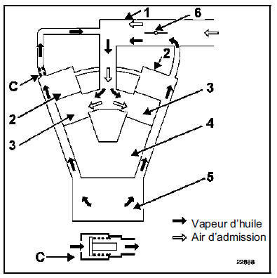 Pour garantir un bon fonctionnement du système antipollution, le circuit de réaspiration des vapeurs d'huile doit être maintenu propre et en bon état.