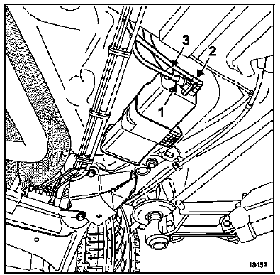 Pour ce faire, on met en relation, par l'intermédiaire d'une canalisation et d'une électrovanne, l'absorbeur et le collecteur d'admission. Cette électrovanne est située entre la chapelle d'amortisseur avant droite et le réservoir de direction assistée pour le moteur F4R Turbo et sur le collecteur d'admission, près du réservoir de liquide de frein pour le moteur V4Y.